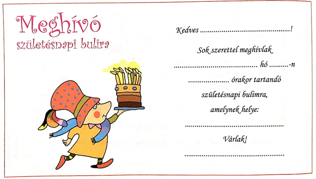 Egészítsd ki Munkafüzet 68. oldalának 6. a) feladatában lévő születésnapi meghívót! Figyelj a meghívó részeire, semmit se hagyj ki!